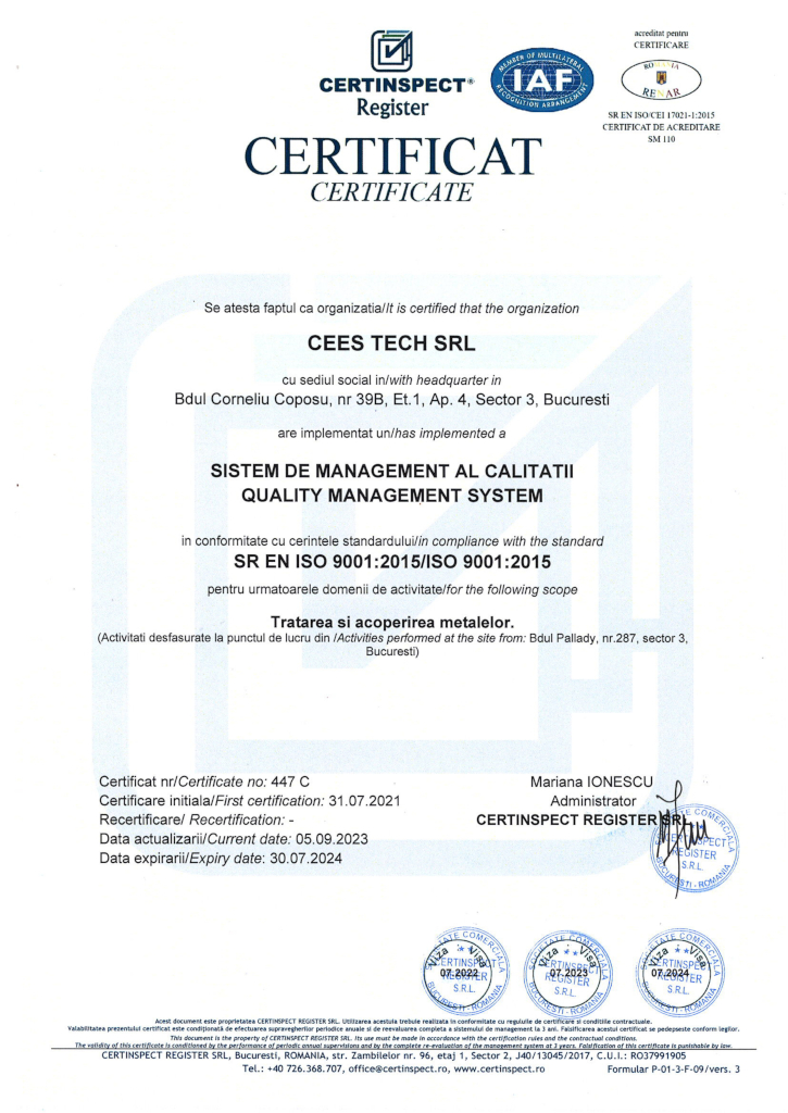 Activăm, atât pe piața internă cât și pe cea internațională, încă din anul 1993. Cu o vastă experiență în domeniul tratării și acoperirii metalelor, suntem gata să satisfacem cerințele dumneavoastră.